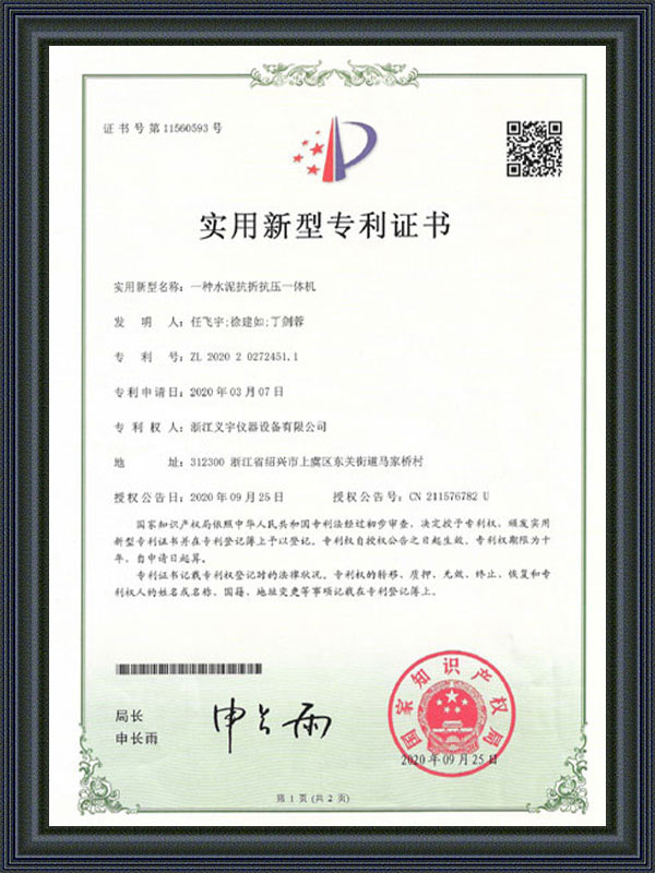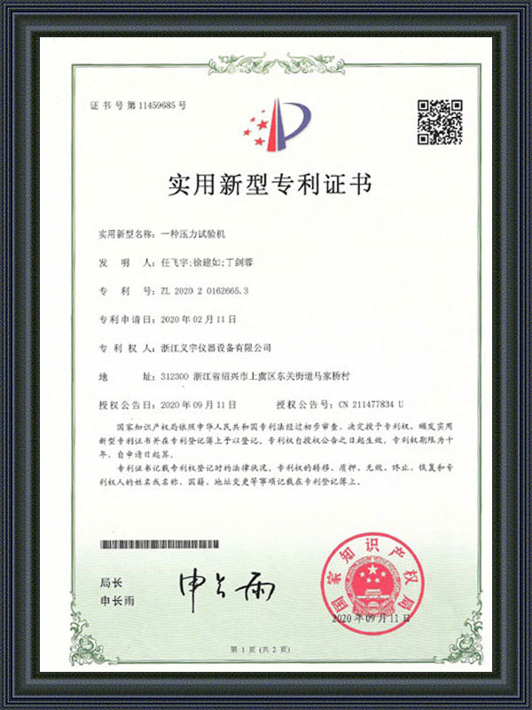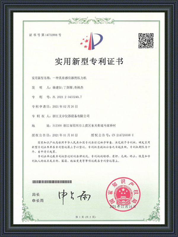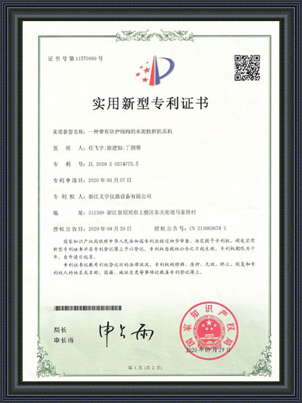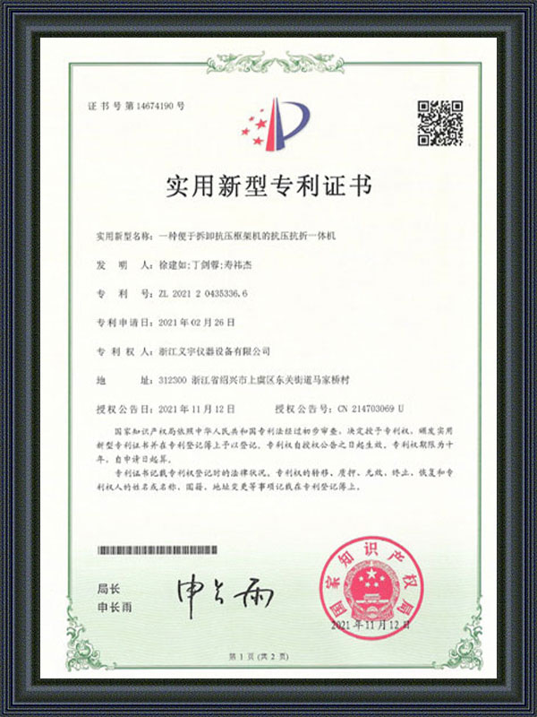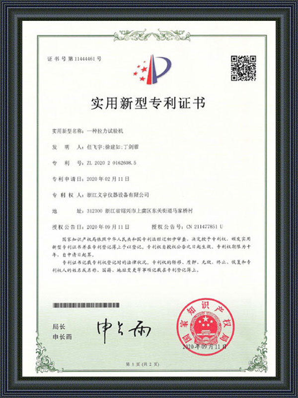 Gebruiksmodel patentcertificaat